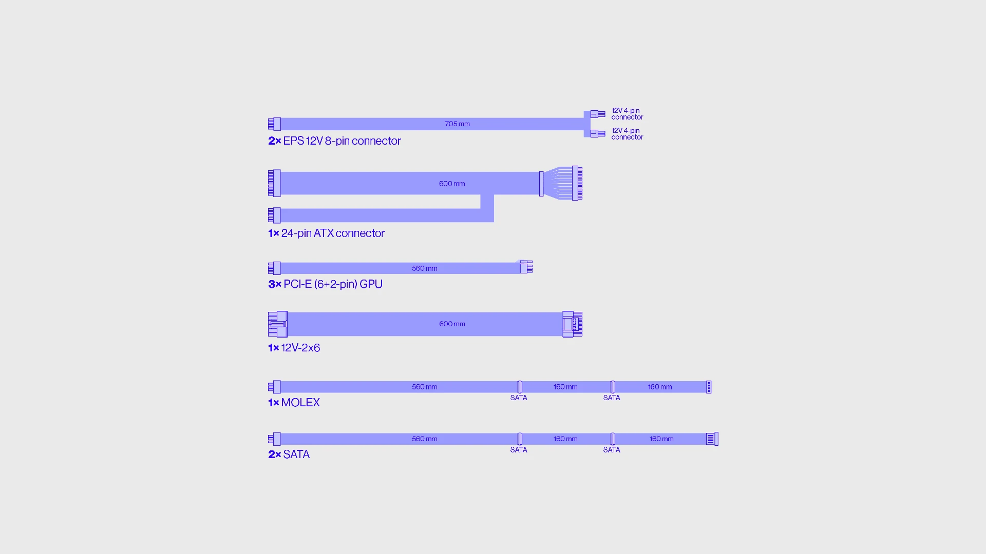 o 2× EPS 12V 8-PIN (4+4), 705 mm