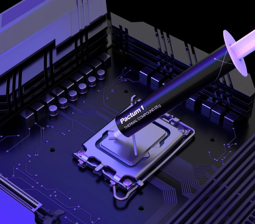 Nadprůměrná hustota teplovodivé pasty Pactum 1 těsně vyplňuje všechny nerovnosti a usnadňuje její přilnavost k povrchu. Výsledná vrstva mezi procesorem a chladicím systémem velmi dobře vede teplo, což umožňuje plné využití chladicího potenciálu vašeho počítače.