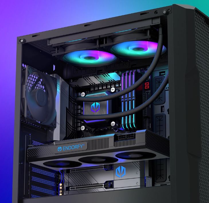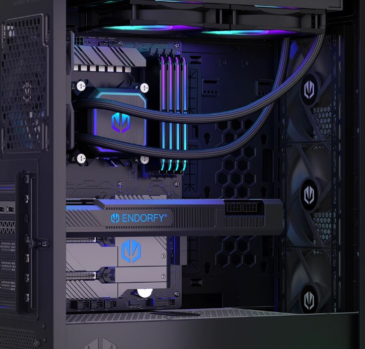 Hardware bez ARGB je v pořádku – ale pravdou je, že je zábavné mít polární záři po celém stole. Proto jsme vám dali ventilátory Fluctus 120 PWM s ARGB. Zvýraznili jsme také okraj bloku čerpadla a logo ENDORFY – užijte si to!