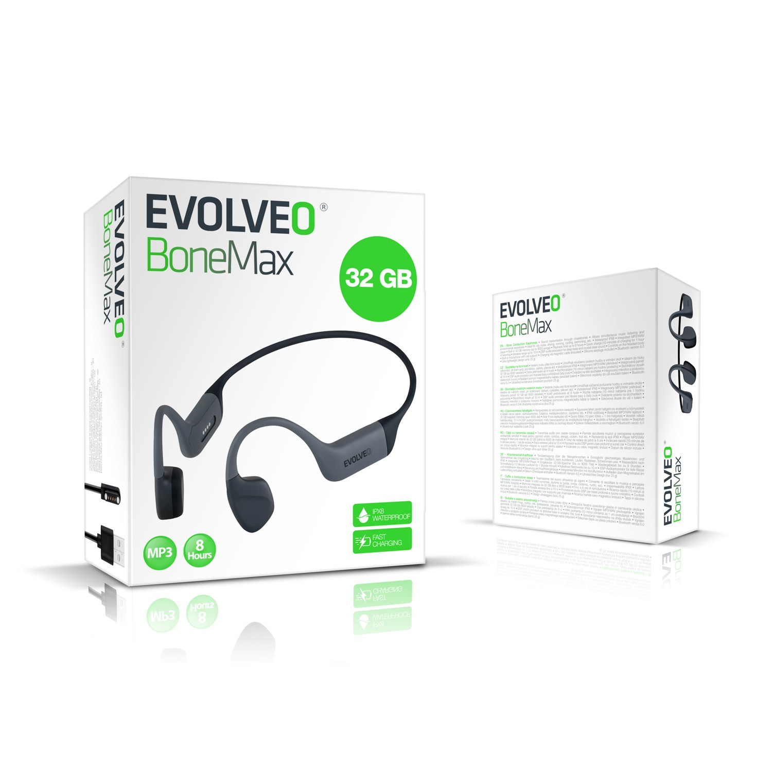 • Ideální volbou jsou pro sportovce – ať už běháte po parku, jedete na kole do práce, nebo se věnujete vodním radovánkám, EVOLVEO BoneMax vám umožní slyšet okolní svět i oblíbenou muziku zároveň.