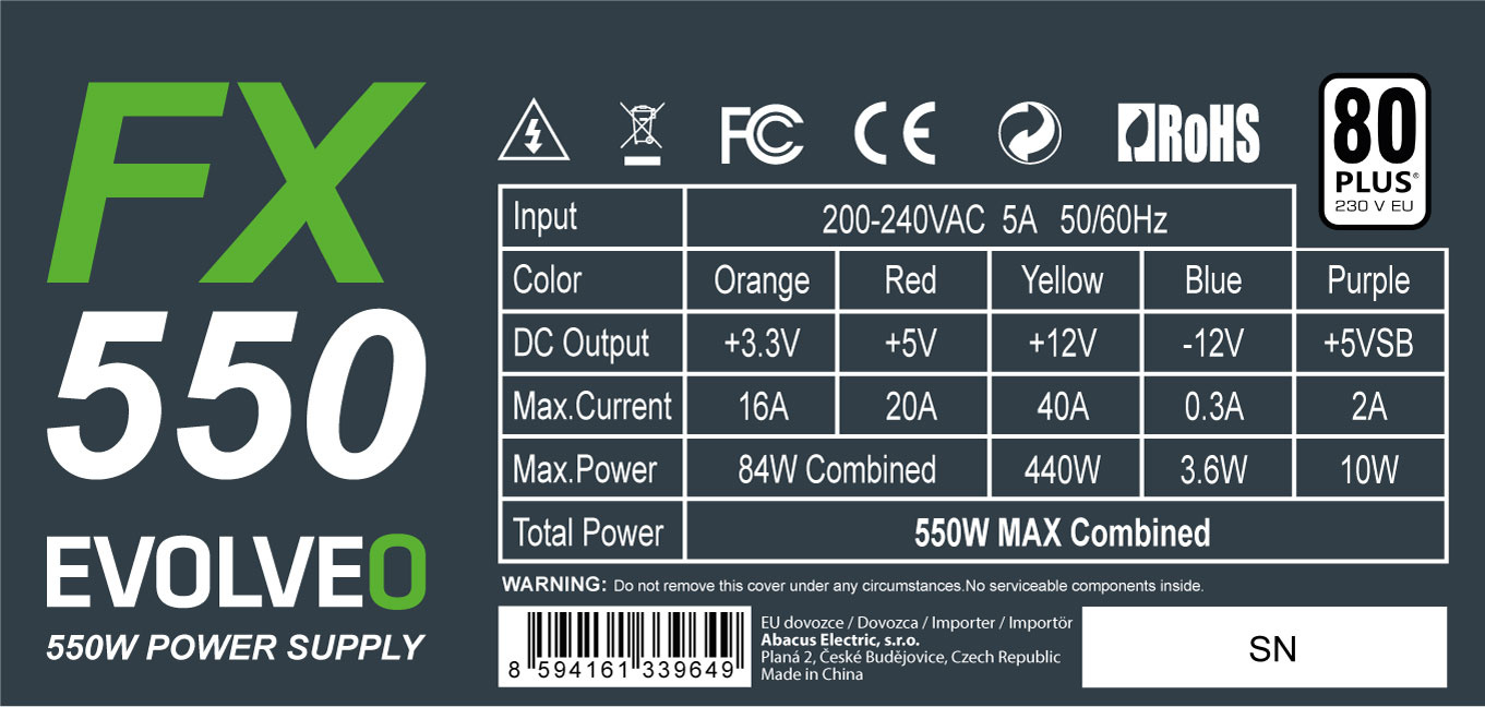 EVOLVEO FX 550, zdroj 550W ATX, 14cm, tichý, 80+, White, záruka 3 roky