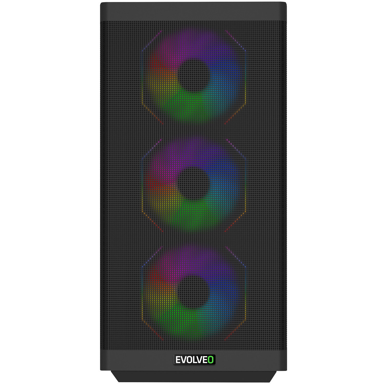 EVOLVEO Scorpio, skříň eATX/ATX, 4x ARGB ventilátor 120mm, boční panel temperované sklo + mřížkovaný přední panel