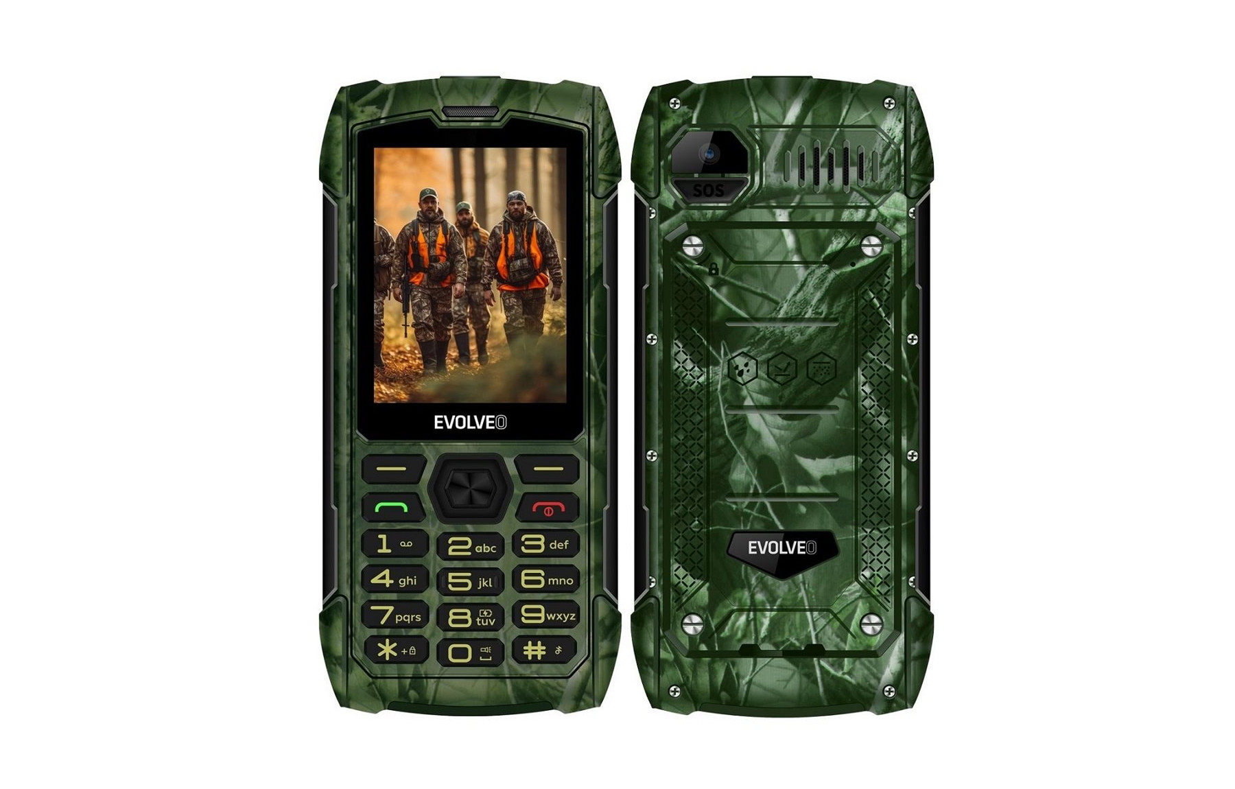 • EVOLVEO StrongPhone H1, vodotěsný odolný Dual SIM telefon, lovecká kamufláž (PartNo SGP-H1-HNT)