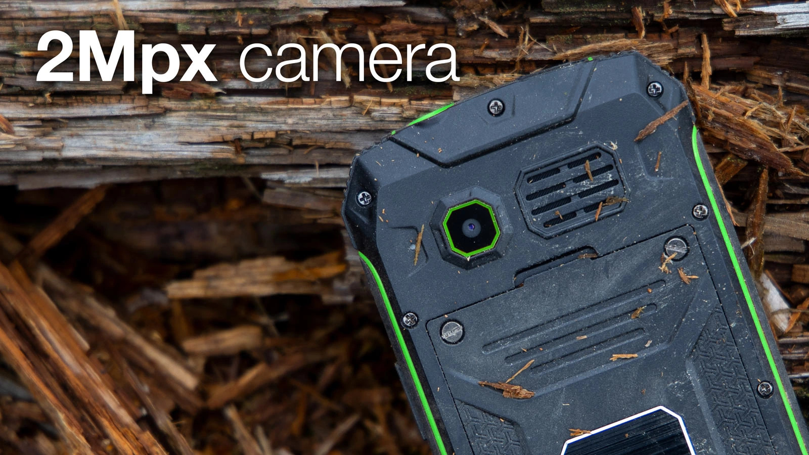 Součástí výbavy odolného telefonu je 2 Mpx fotoaparát, výkonná LED svítilna nebo vestavěné FM rádio s integrovanou anténou a automatickým laděním stanic. Z další výbavy můžete využít například kalendář, budíky nebo kalkulačku.
