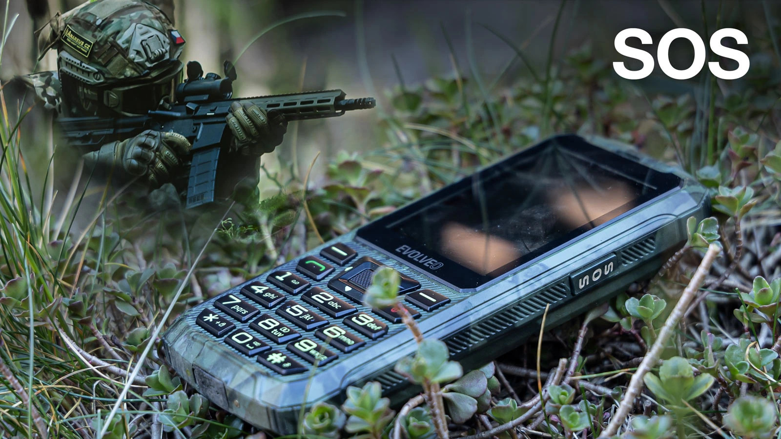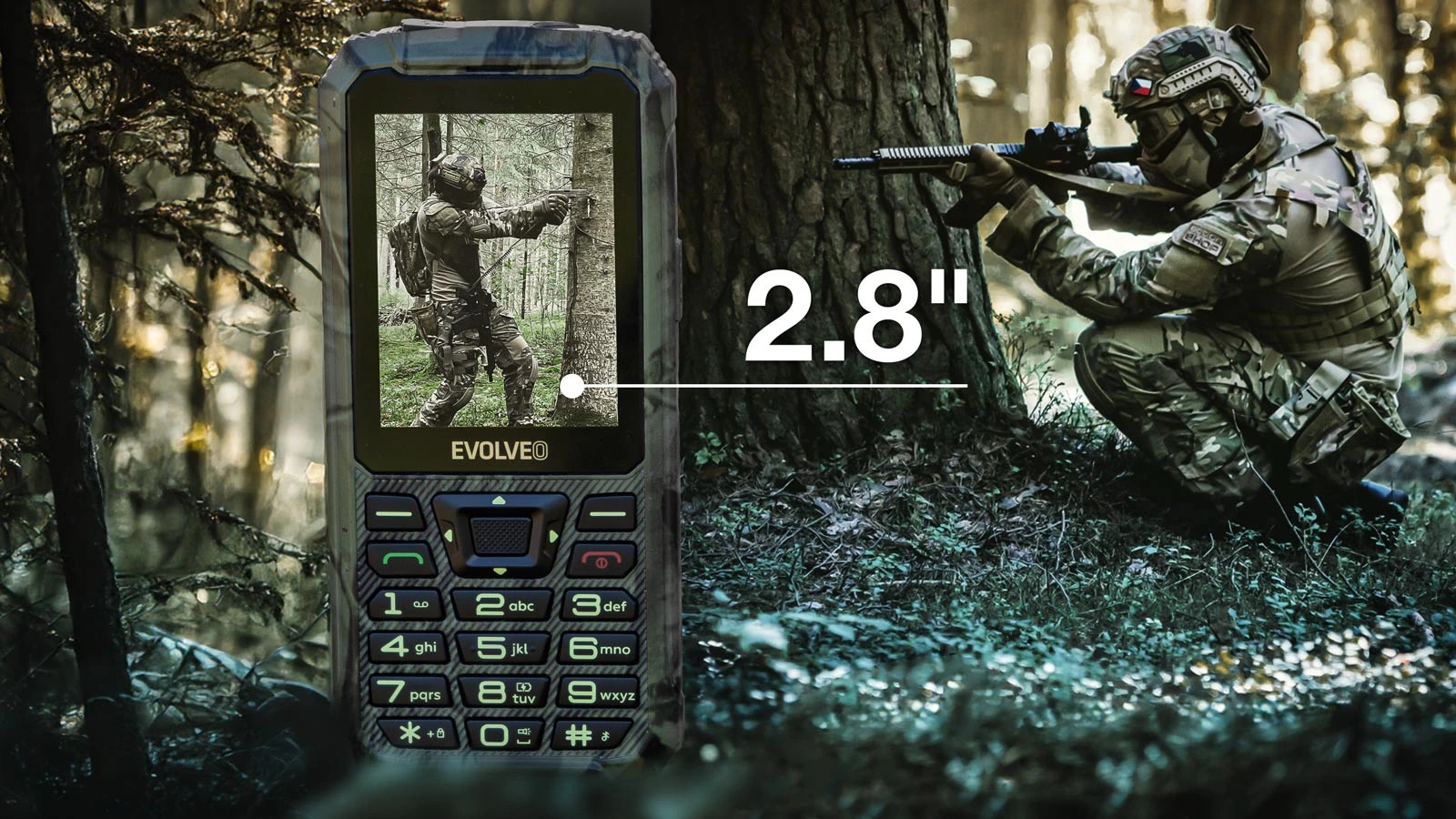 4. EVOLVEO StrongPhone Z6, vodotěsný odolný Dual SIM telefon, lovecká kamufláž