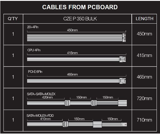 • 1x napájecí kabel s 2x S-ATA a 1x MOLEX konektorem