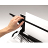 Oddělená ergonomická děrovací a vázací páka pro průběžné vkládání děrovaných listů do plastového hřbetu výrazně zefektivňuje práci. Vkládání děrovaných listů shora pro snadné setřesení a tím bezchybnou perforaci.