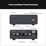 Připojení probíhá přes klasické RCA vstupy a výstupy. Pevné kovové šasi eliminuje elektromagnetické rušení, chrání citlivou elektroniku a zajišťuje stabilitu při delším poslechu. Díky kompaktním rozměrům se snadno začlení i do menších HiFi sestav.