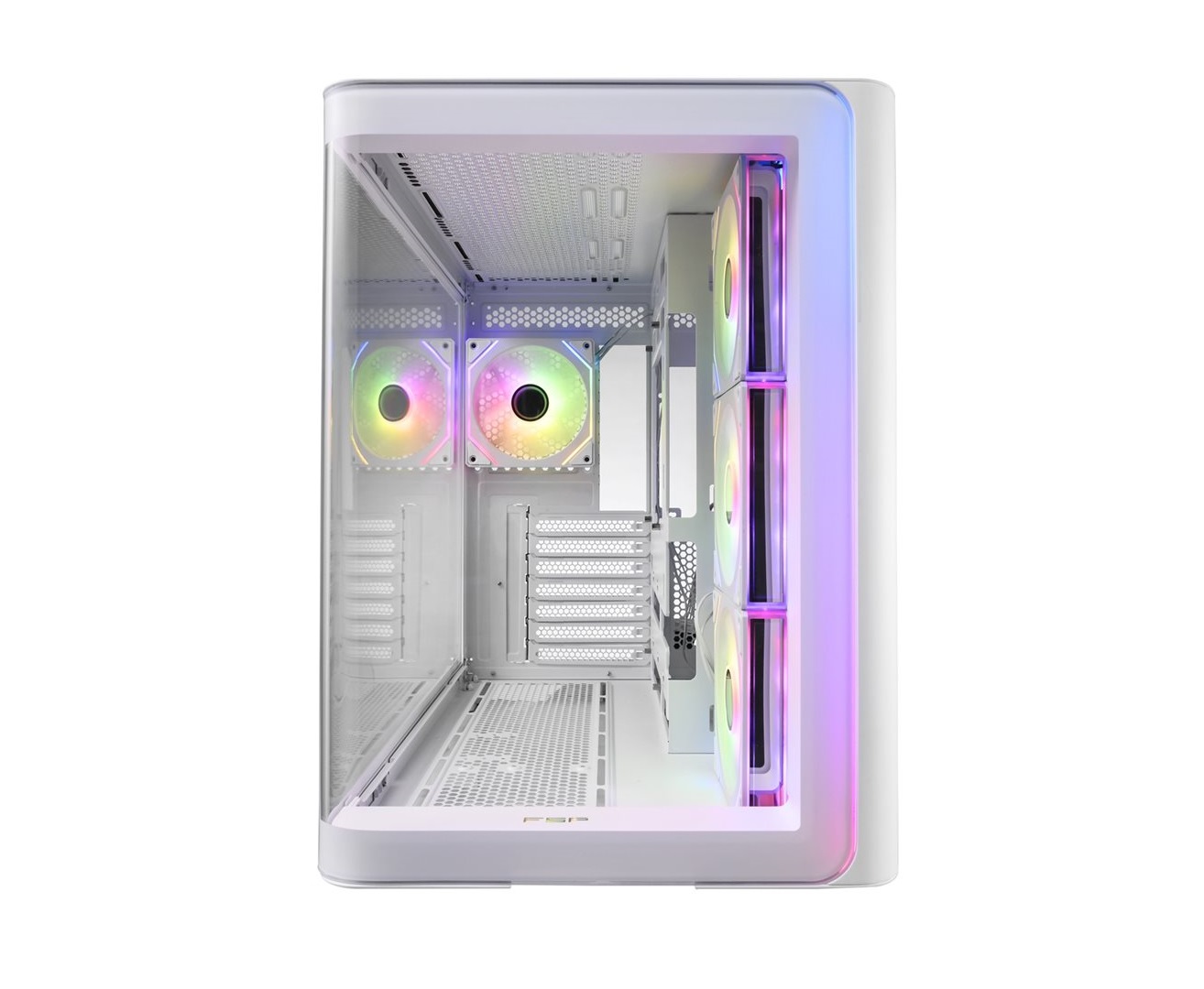 FSP M580 se vyznačuje panoramatickým designem z tvrzeného skla a zaobleným zkosením, takže nabízí exkluzivní exteriér, který zvýrazní potenciál vašeho systému a zároveň důsledně umocní herní atmosféru.