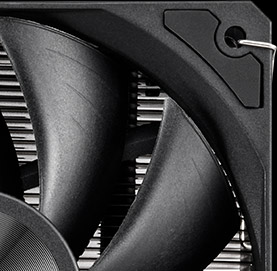 Je vybaven 120mm ventilátorem PWM a antivibračními gumovými podložkami, které zajišťují tichý chod i při velkém zatížení.