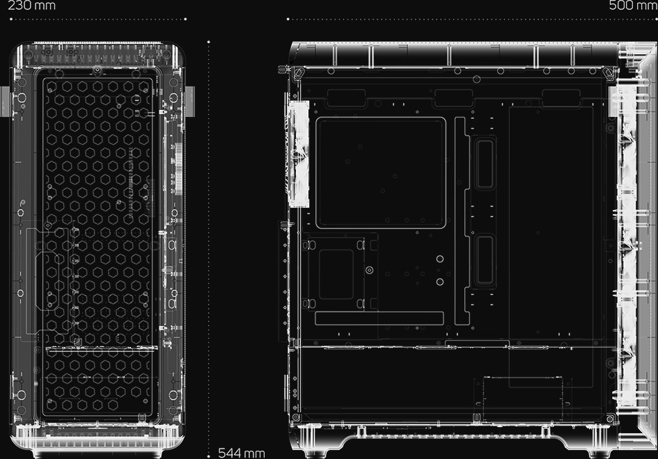 Připraveno pro instalaci AIO Top / Front 360. Prostor na horní straně umožňuje instalaci dalších tří 120mm ventilátorů v konfiguraci PUSH-PULL pro maximální chladicí výkon.