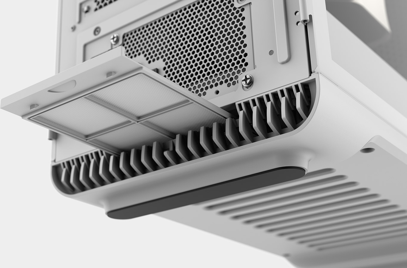 Zásobník prachového filtru udržuje počítač v čistotě se snadným přístupem.