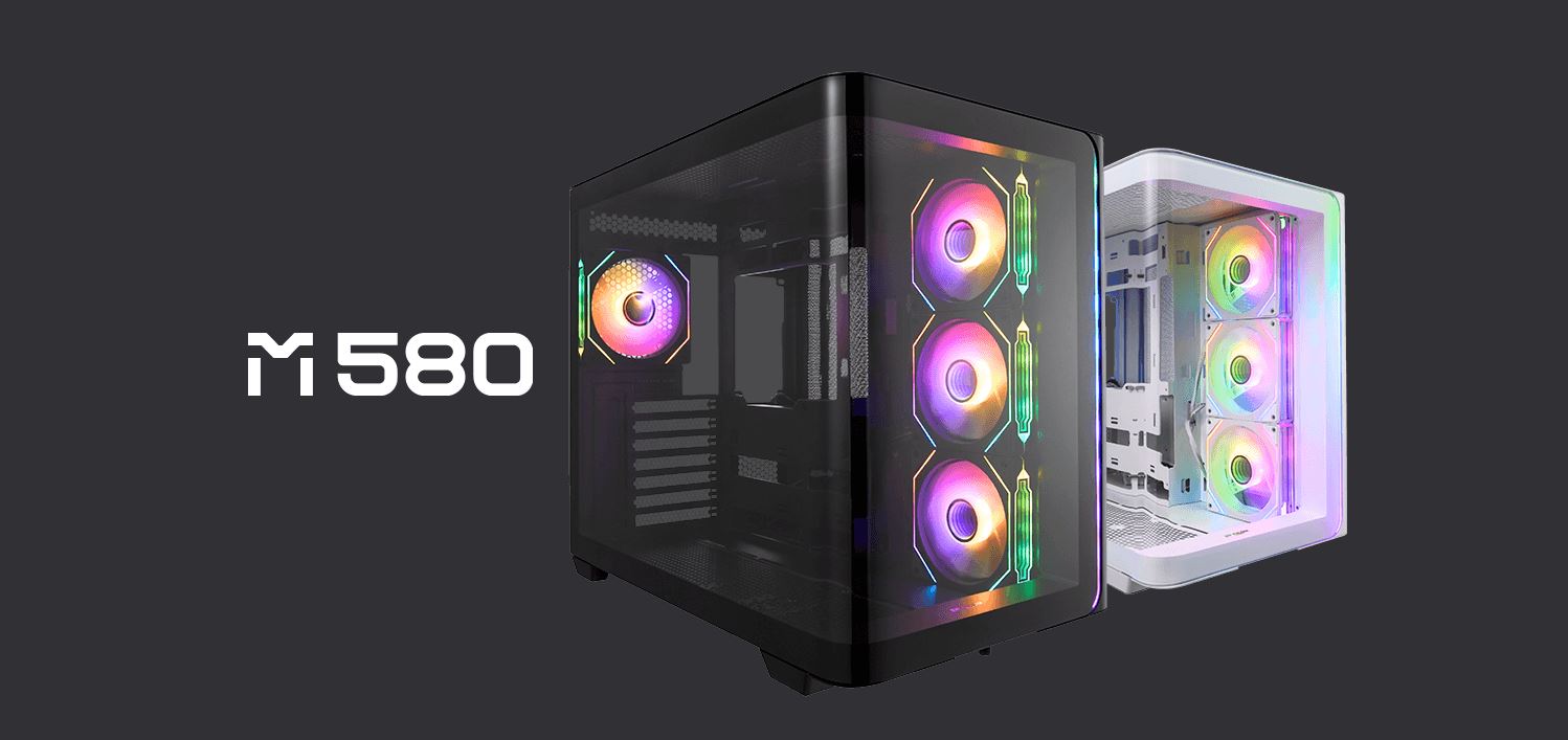 Skříň M580 podporuje základní desky ATX (s připojením zezadu), M-ATX a Mini-ITX, pojme grafické karty o průměru až 445 mm a chladič o průměru až 360 mm, čímž poskytuje flexibilitu pro pohlcující a neomezené herní zážitky.