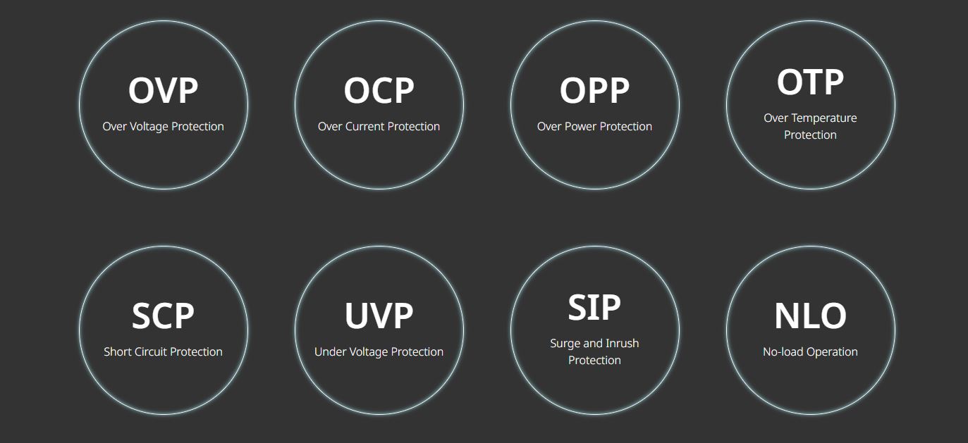 * kompletní ochrana: OVP, OCP, OPP, OTP, SCP, UVP, SIP, NLO