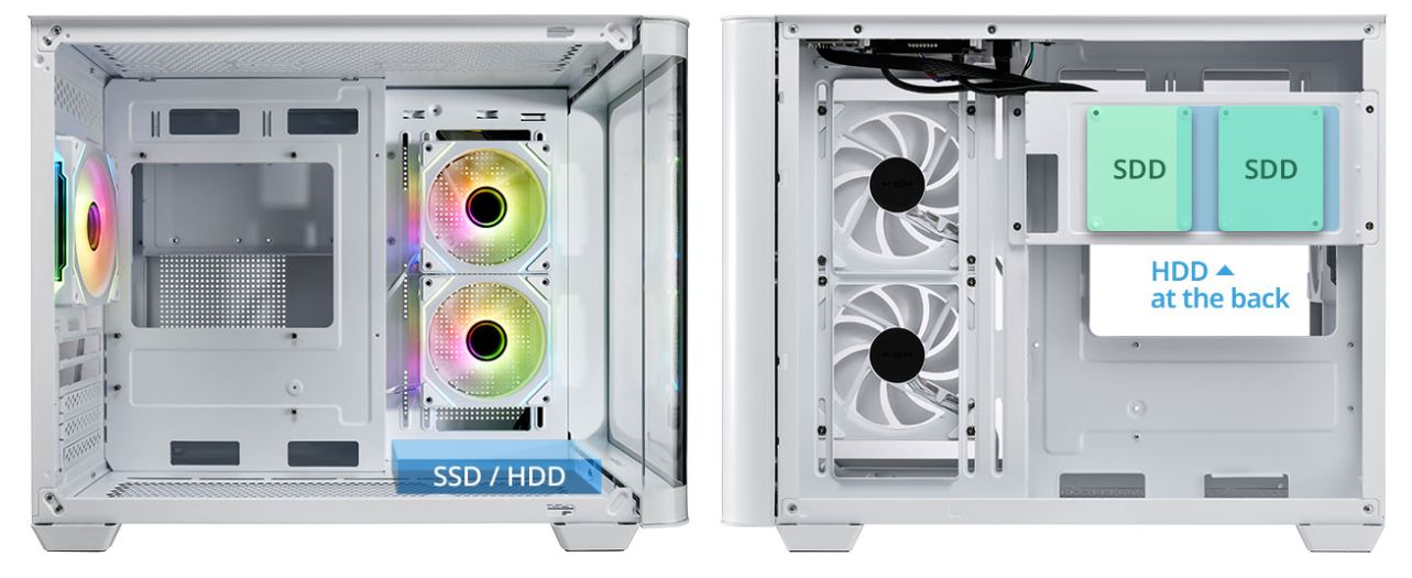Bočnice je vybavena třemi sadami ventilátorů ARGB a také reverzními tichými ventilátory, které lze ovládat pomocí základní desky. Tato sestava předvádí oslnivý světelný efekt, zatímco chladicí výkon byl speciálně optimalizován, aby byl zajištěn nejlepší výkon a stabilita systému.