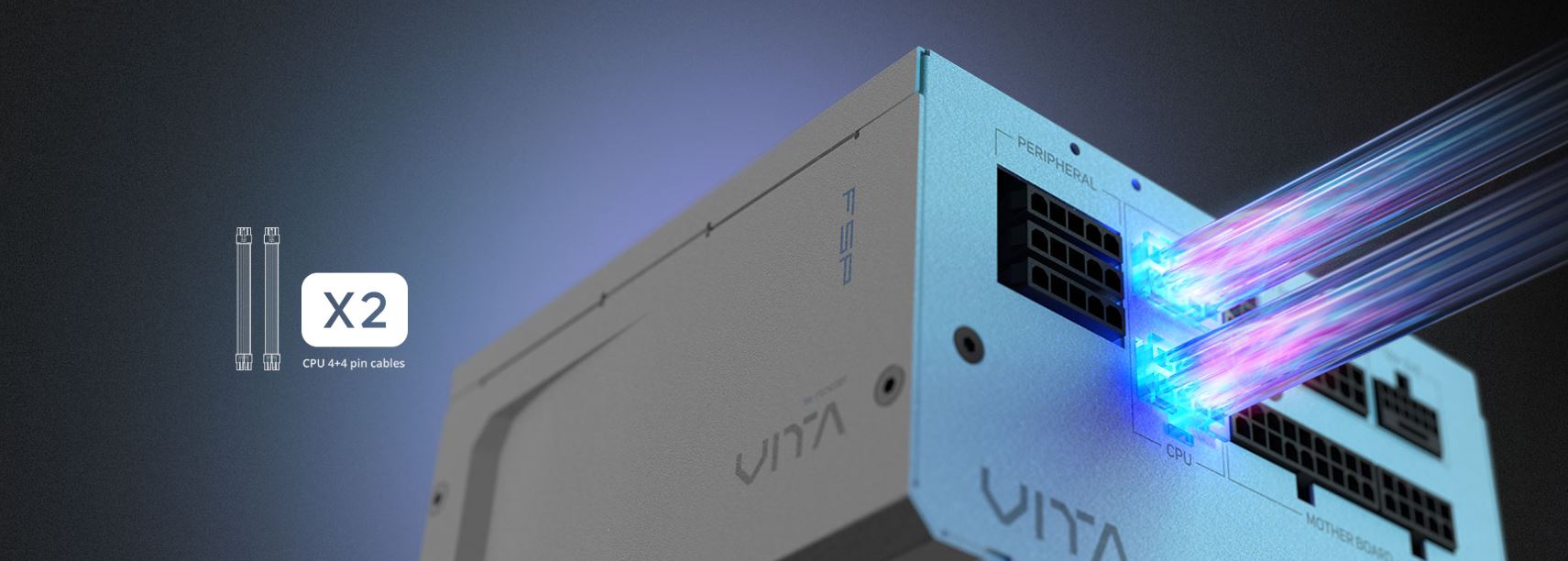 Bílá verze VITA GM je vybavena zcela bílými modulárními kabely a konektory, což vytváří mimořádně chladný, zcela bílý estetický vzhled. Její plně modulární konstrukce kabelů usnadňuje instalaci zdroje a umožňuje uživatelům používat pouze potřebné kabely, což zlepšuje proudění vzduchu a snižuje nepořádek v systému.