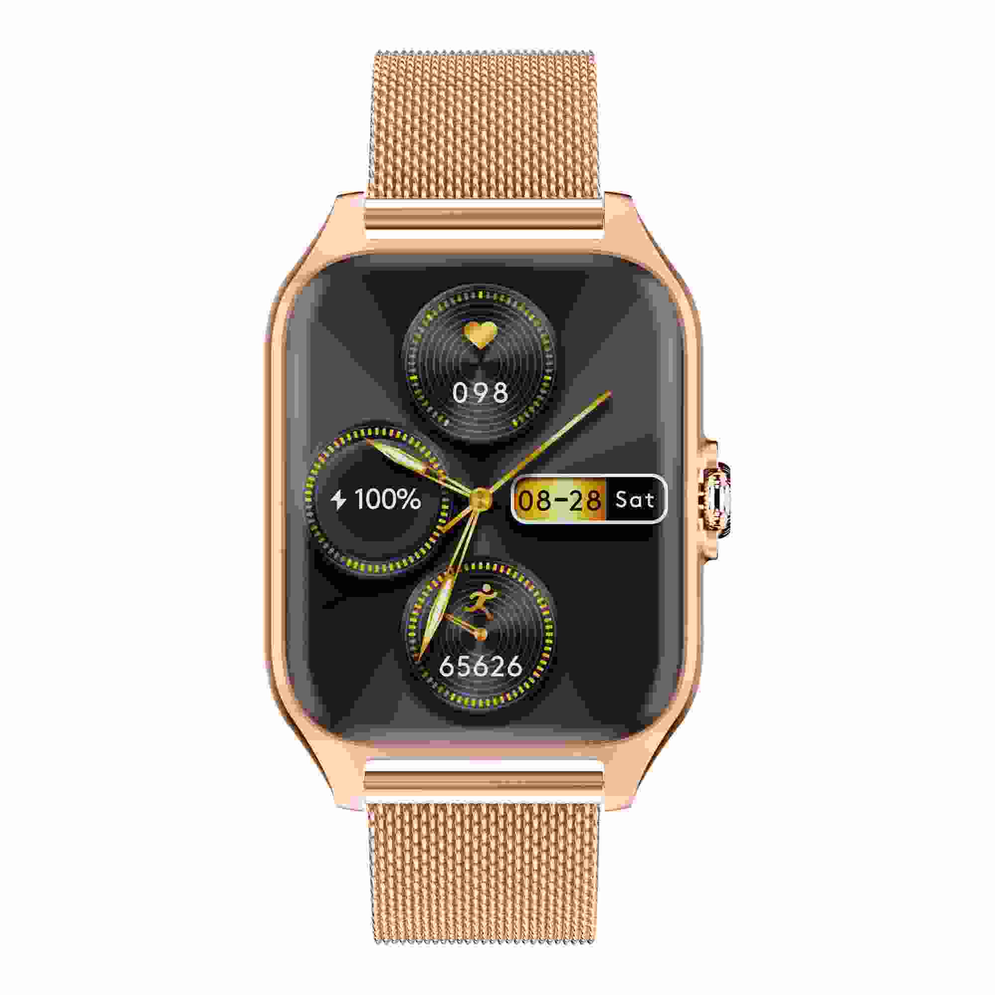 - Sada obsahuje: chytré hodinky Garett, zlatorůžový silikonový řemínek, zlatý kovový řemínek, nabíjecí kabel USB (bez zástrčky), příručku QSG