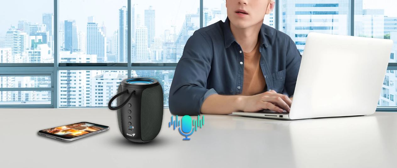 Užijte si 6 hodin přehrávání s Genius SP-915BT, který obsahuje USB-C nabíjecí kabel a vestavěný mikrofon pro hovory nebo hlasové příkazy.