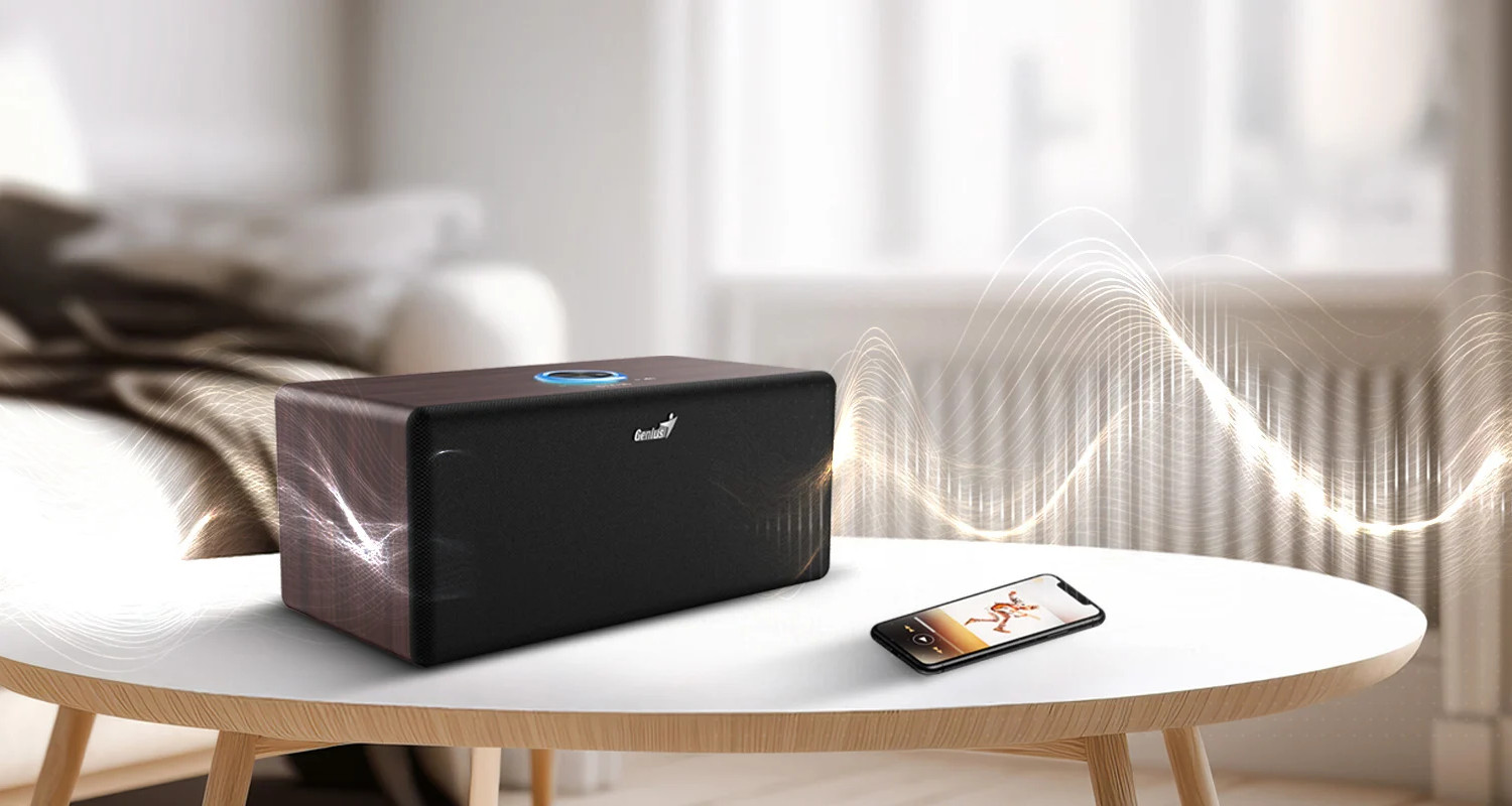 *Jednodílné stereo Bluetooth dřevěné reproduktory pro poslech z mobilních telefonů, tabletů, PC nebo audio zařízení