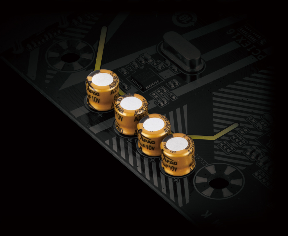Základní desky GIGABYTE používají špičkové audio kondenzátory. Tyto vysoce kvalitní kondenzátory pomáhají zajistit vysoké rozlišení a vysokou věrnost zvuku, aby byly zvukové efekty pro hráče co nejrealističtější.