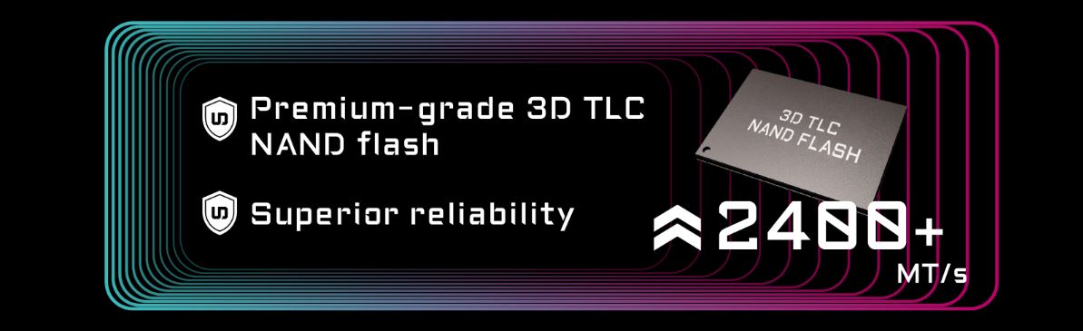 UltrarychlostnĂ 3D TLC NAND paměť s propustnostĂ pĹ™es 2400 MT/s je vybrána na základÄ› kritickĂ˝ch kritĂ©riĂ a v kombinaci s optimalizacĂ firmwaru SSD disku AORUS Gen4 7000E vede k vynikajĂcĂmu vĂ˝konu.