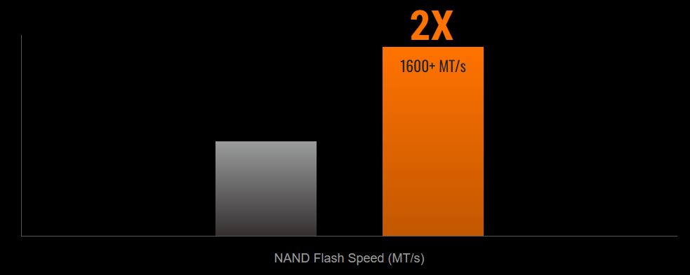 UltrarychlostnĂ 3D TLC NAND Flash pracuje s rychlostĂ pĹ™es 1600 MT/s, coĹľ je o 50 % vĂce neĹľ u pĹ™edchozĂ verze, coĹľ vede k lepšĂmu vĂ˝konu.