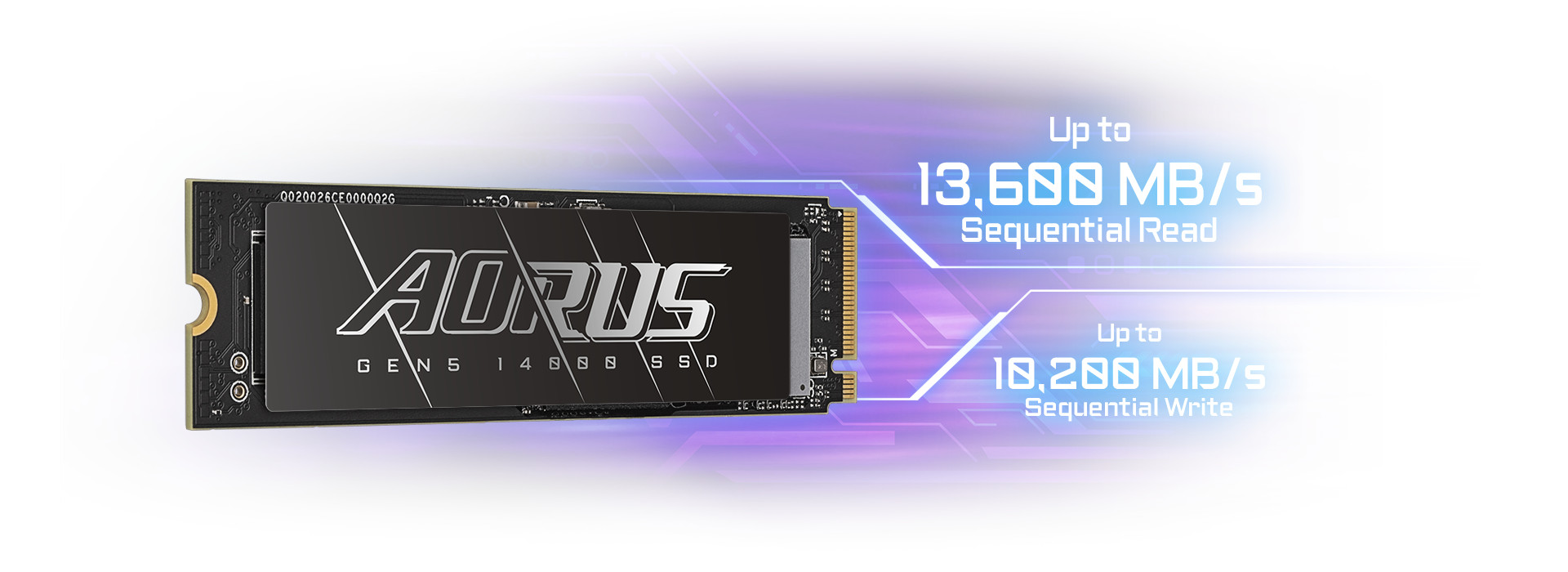 SSD disk AORUS Gen5 14000 je vybaven řadičem PCIe Gen5.0 x4 Phison PS5026-E26 a zbrusu novou 232vrstvou pamětí 3D TLC NAND Flash, která nově definuje vrchol rychlosti a efektivity. S bleskovými rychlostmi sekvenčního čtení/zápisu až 13 600 / 10 200 MB/s je tento SSD disk navržen tak, aby splňoval požadavky počítačových nadšenců, hráčů a profesionálů v oblasti renderingu. Zažijte bleskové přenosy dat a vychutnejte si plynulejší hraní her s nižší latencí díky SSD disku AORUS Gen5 14000. Odemkněte skutečný potenciál svého systému a pozvedněte své herní dovednosti na dosud nevídanou úroveň.