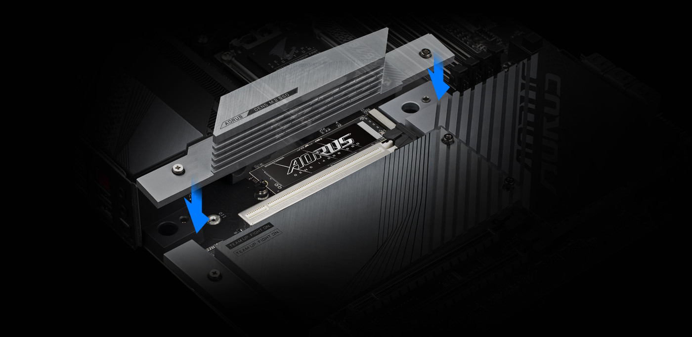 Při použití SSD disku AORUS Gen5 14000 je zásadní spárovat jej se základní deskou vybavenou vestavěným chladičem. Vysokorychlostní přenosové schopnosti PCIe5.0 x4 SSD vyžadují účinný odvod tepla, aby byl zachován optimální výkon a nedocházelo k tepelnému škrcení.