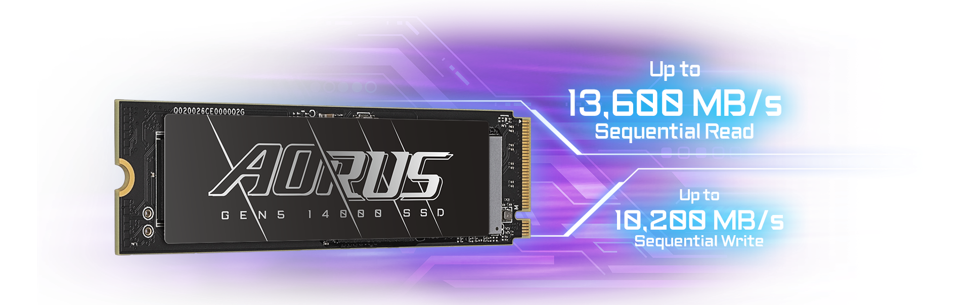 SSD disk AORUS Gen5 14000 je vybaven Ĺ™adiÄŤem PCIe Gen5.0 x4 Phison PS5026-E26 a zbrusu novou 232vrstvou pamÄ›tĂ 3D TLC NAND Flash, která novÄ› definuje vrchol rychlosti a efektivity. S bleskovĂ˝mi rychlostmi sekvenÄŤnĂho ÄŤtenĂ/zápisu aĹľ 13 600 / 10 200 MB/s je tento SSD disk navrĹľen tak, aby splĹoval poĹľadavky poÄŤĂtaÄŤovĂ˝ch nadšencĹŻ, hráčů a profesionálĹŻ v oblasti renderingu. ZaĹľijte bleskovĂ© pĹ™enosy dat a vychutnejte si plynulejšà hranĂ her s nižšà latencĂ dĂky SSD disku AORUS Gen5 14000. OdemknÄ›te skuteÄŤnĂ˝ potenciál svĂ©ho systĂ©mu a pozvednÄ›te svĂ© hernĂ dovednosti na dosud nevĂdanou ĂşroveĹ.