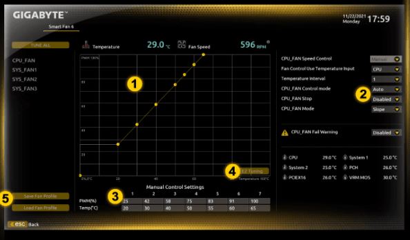 Použití může umístit 4 body ladění EZ při hrubé teplotě/rychlosti ventilátoru a Chytrý ventilátor 6 může rychle generovat a vějířová křivka.
