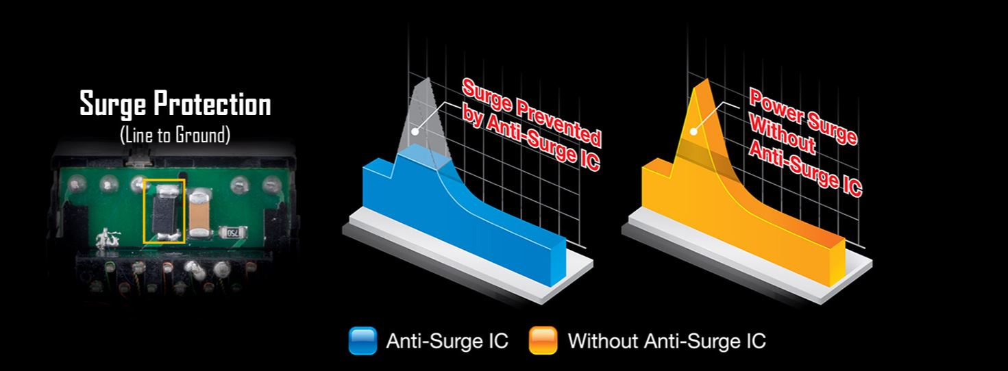 Základní desky GIGABYTE jsou také vybaveny speciálními integrovanými obvody proti přepětí, které chrání vaši základní desku a pomáhají zajistit, aby byl váš počítač vybaven pro případné nepravidelné elektrické výboje.