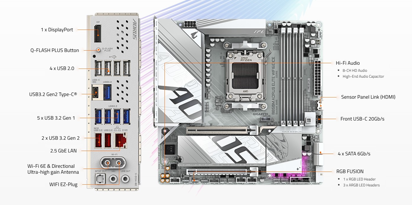 GIGABYTE B850M AORUS ELITE WIFI6E ICE