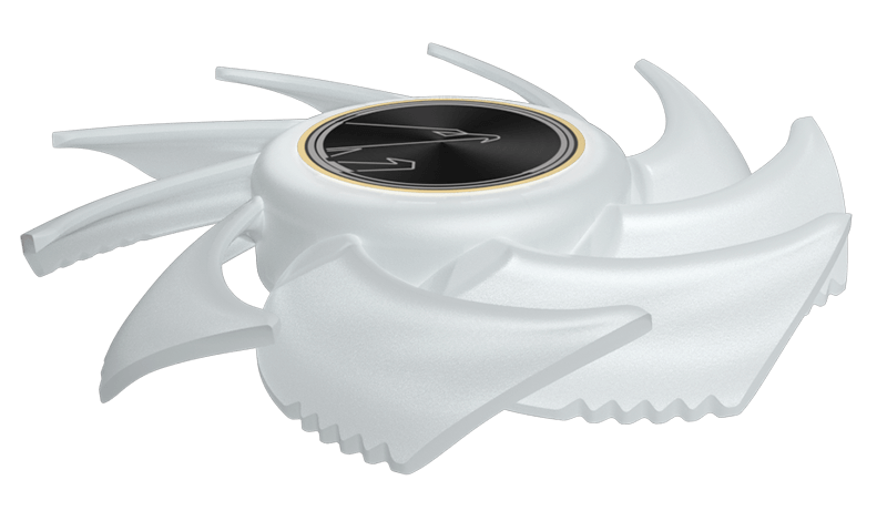 Zvětšení spodní poloviny lopatek pro zvýšení kompresní schopnosti ventilátoru. Vroubkované hrany lopatek ventilátoru snižují hlučnost, zvyšují účinnost, minimalizují vibrace a zlepšují proudění vzduchu.