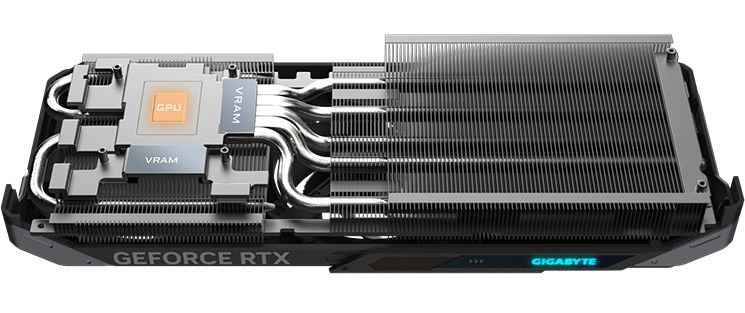MÄ›dÄ›ná deska se pĹ™Ămo dotĂ˝ká grafickĂ©ho procesoru a spolu s kompozitnĂmi mÄ›dÄ›nĂ˝mi tepelnĂ˝mi trubicemi rychle pĹ™enášà teplo z grafickĂ©ho procesoru a pamÄ›ti VRAM do chladiÄŤe.
