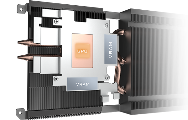 MÄ›dÄ›ná deska se pĹ™Ămo dotĂ˝ká grafickĂ©ho procesoru a spolu s kompozitnĂmi mÄ›dÄ›nĂ˝mi tepelnĂ˝mi trubicemi rychle pĹ™enášà teplo z grafickĂ©ho procesoru a pamÄ›ti VRAM do chladiÄŤe.