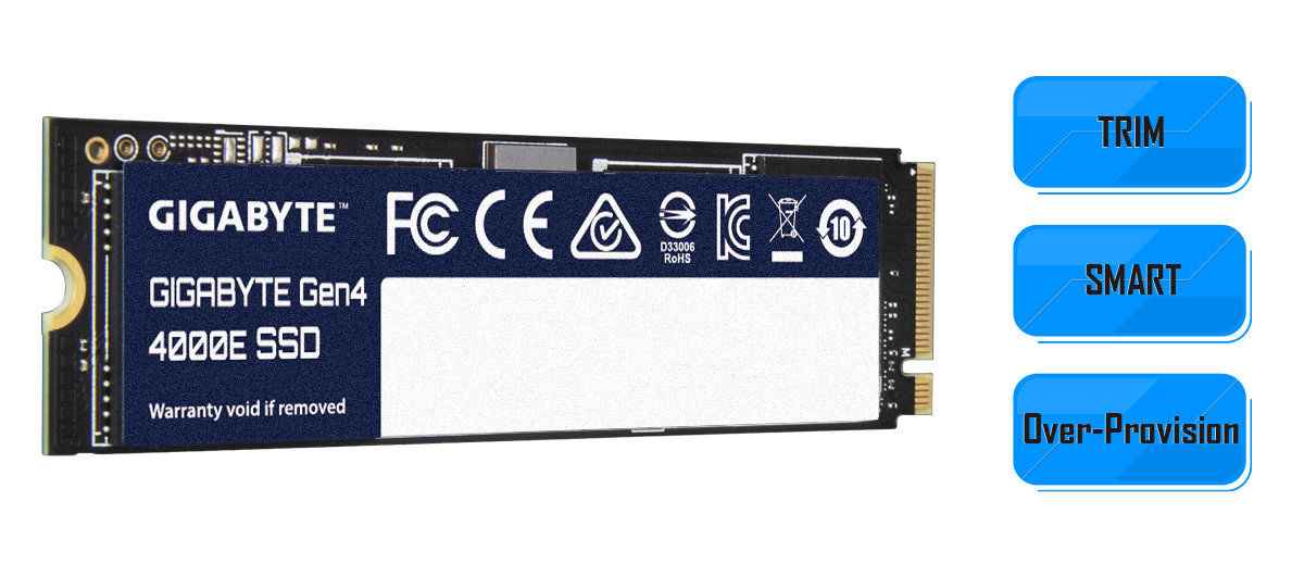 DĂky podpoĹ™e TRIM, SMART a Over-Provision zajišťuje SSD disk GIGABYTE Gen4 4000E nejen ochranu vašich dat, ale takĂ© optimalizaci pro stabilnĂ a konzistentnĂ vĂ˝kon v prĹŻbÄ›hu ÄŤasu.