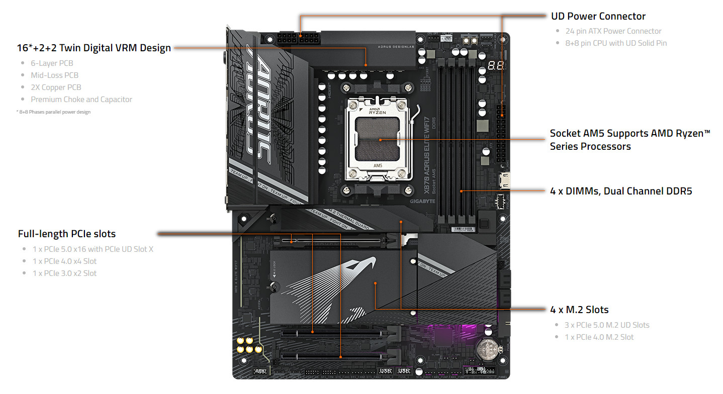 GIGABYTE X870 AORUS ELITE WIFI7/AM5/ATX