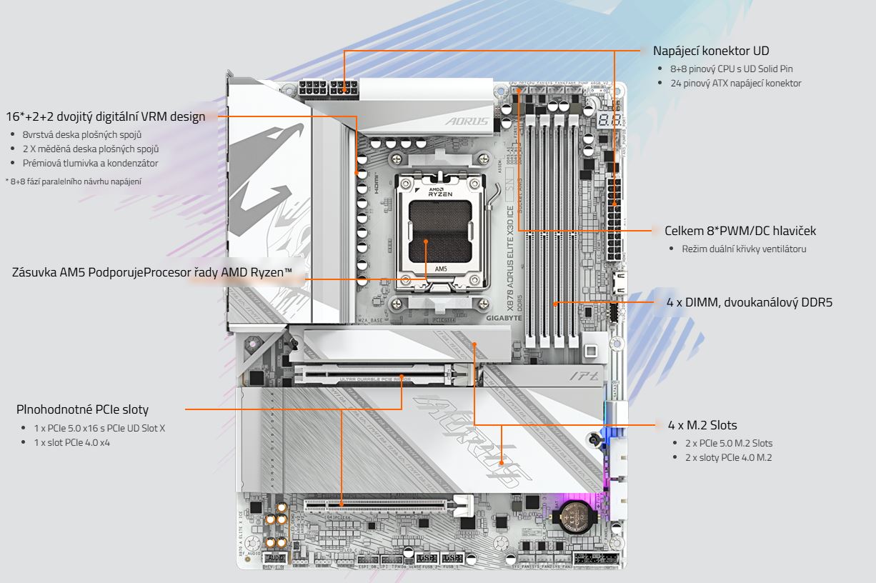 Odkaz na stránku výrobce: https://www.gigabyte.com/cz/Motherboard/X870-AORUS-ELITE-X3D-ICE#kf