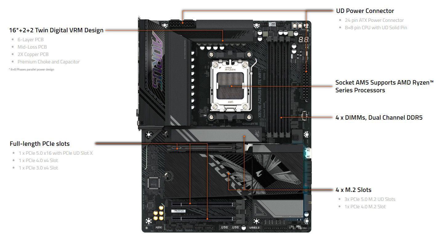 GIGABYTE X870E AORUS ELITE WIFI7/AM5/ATX