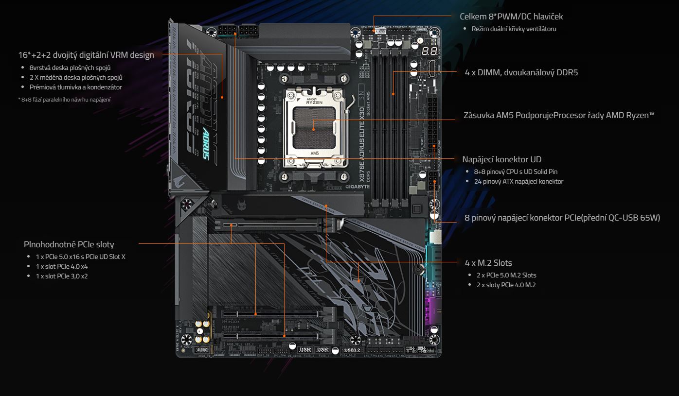 Odkaz na stránku výrobce: https://www.gigabyte.com/Motherboard/X870E-AORUS-ELITE-X3D#kf