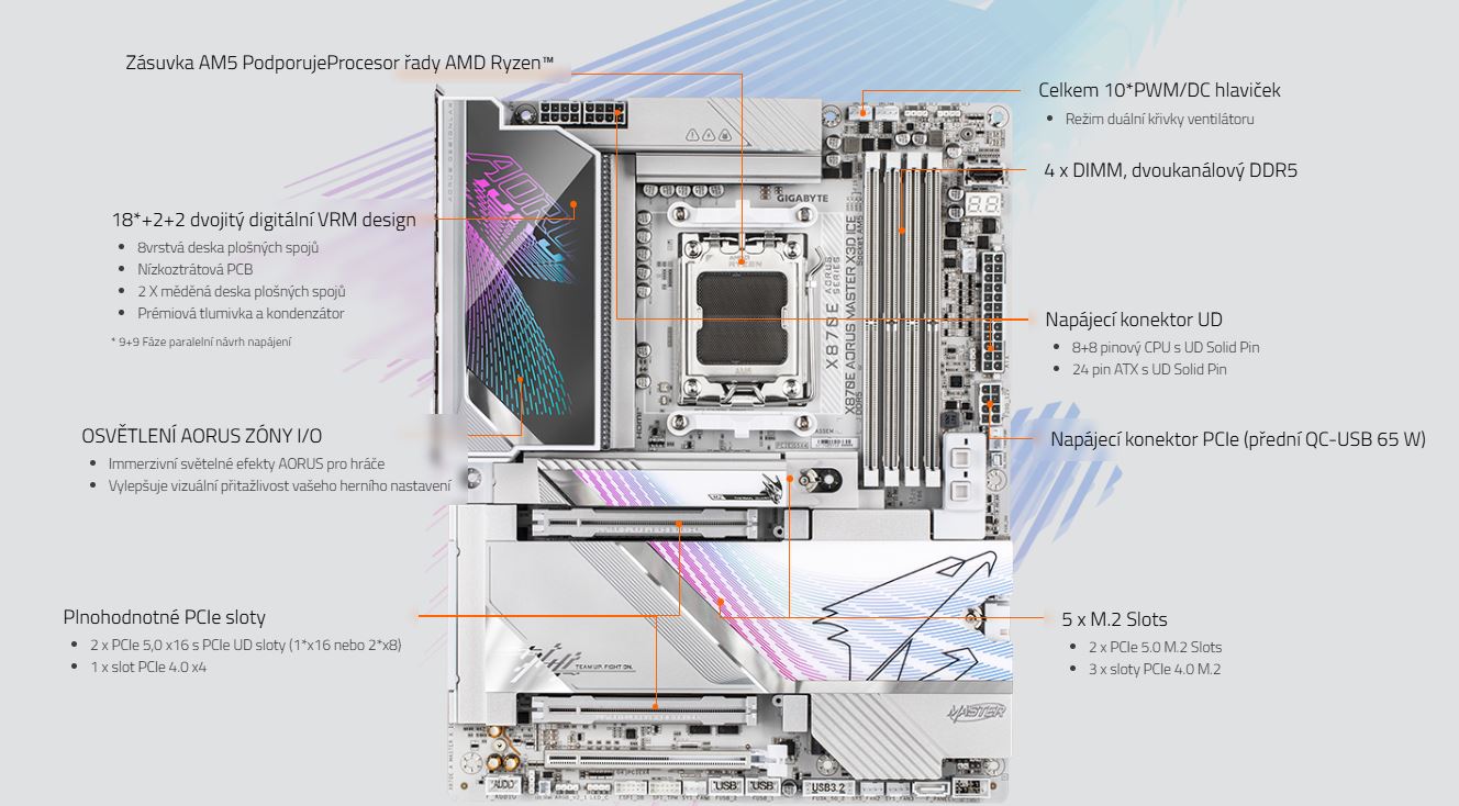 Odkaz na stránku výrobce: https://www.gigabyte.com/Motherboard/X870E-AORUS-MASTER-X3D-ICE#kf