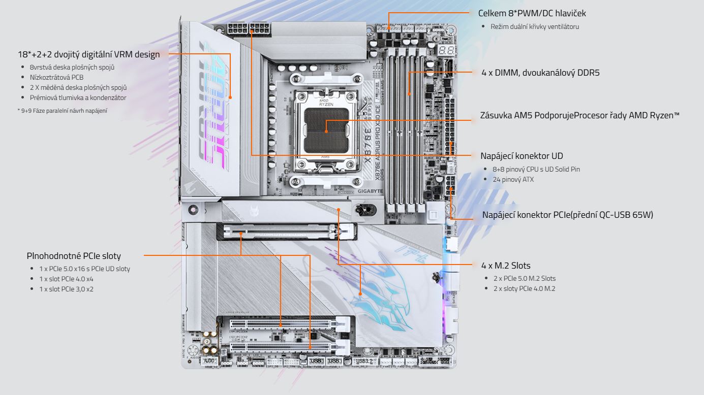 Odkaz na stránku výrobce: https://www.gigabyte.com/Motherboard/X870E-AORUS-PRO-X3D-ICE#kf