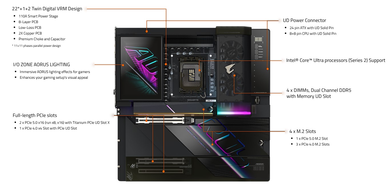- Titanový slot PCIe UD X: Slot PCIe 5.0 x16 s titanem pro maximálnà ochranu grafických karet