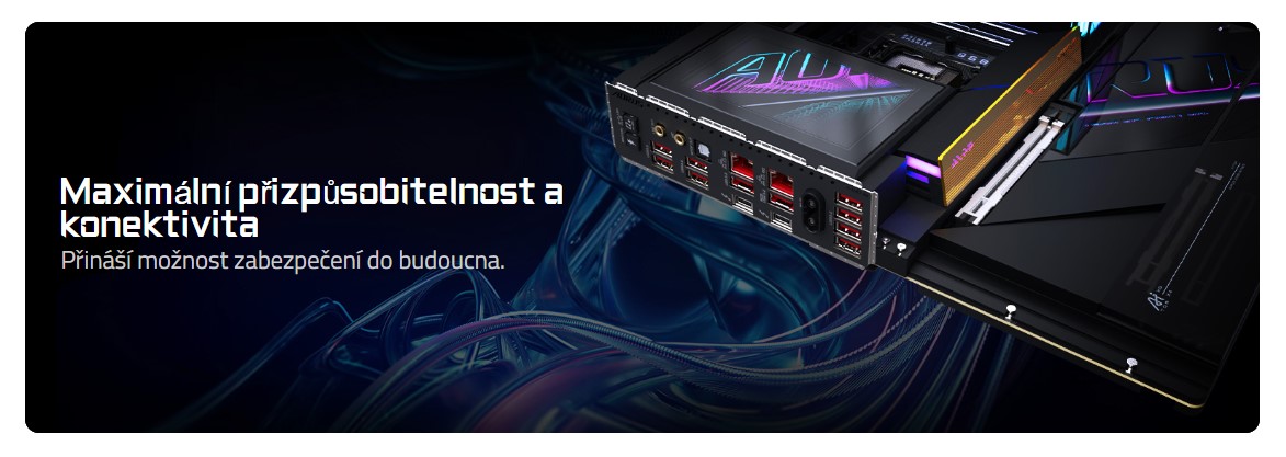 - Maximálnà rozšiřitelnost: 2x PCIe 5.0 x16 sloty pro Multi-GPU a 4x PCIe 5.0/4.0 x4 M.2 sloty