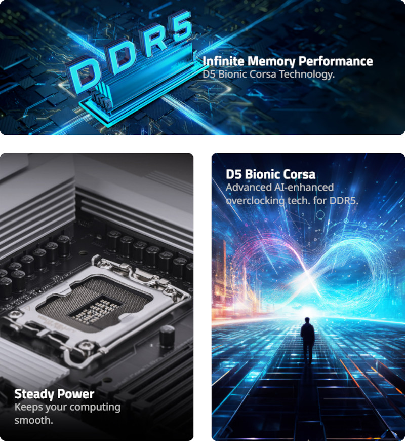 * 4x DIMM patice podporující až 256GB (kapacita 64 GB jednoho DIMM), DDR5 9200(OC) / 9066(OC) / 8933(OC) / 8800(OC) / 8600(OC) / 8400(OC) /8266(OC) / 8200(OC) / 8000(OC) / 7950( OC) / 7900 (OC) / 7800 (OC) / 7600(OC) / 7400(OC) / 7200(OC) / 7000(OC) / 6800(OC) / 6600(OC) / 6400 / 6200 / 6000 / 5800 / 5600MT/s paměťové moduly