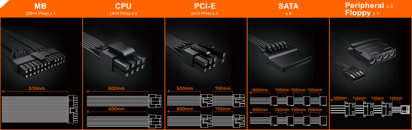 Všechny černé ploché kabely jsou modulární konstrukce. Instalace pouze těch kabelů, které potřebujete, vede k menšímu nepořádku, zvýšení průtoku vzduchu a zlepšení tepelného výkonu skříně.
