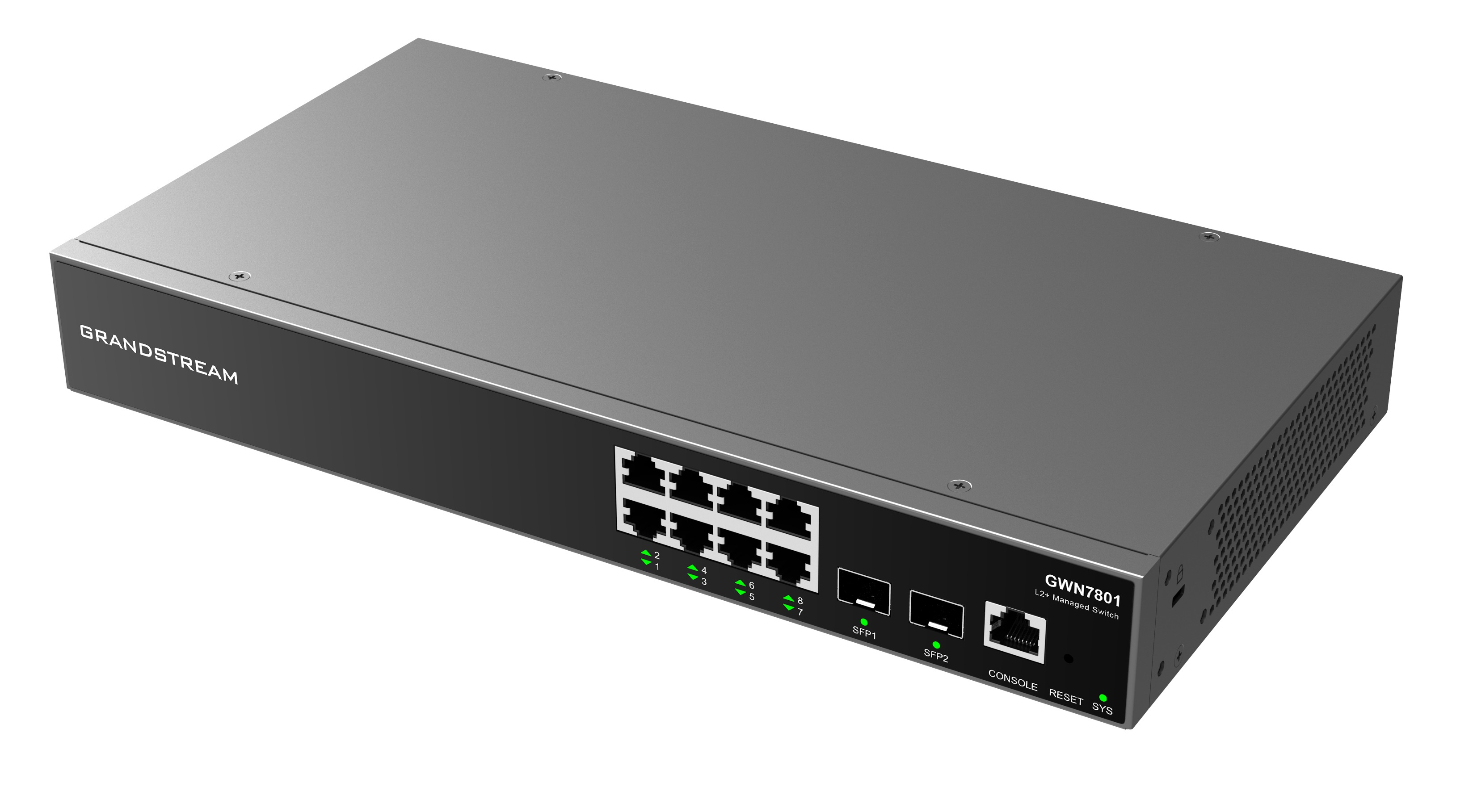 Grandstream GWN7801 L2+ Managed Network Switch 8x 1Gb RJ45, 2x SFP, DHCP, QoS, VLAN