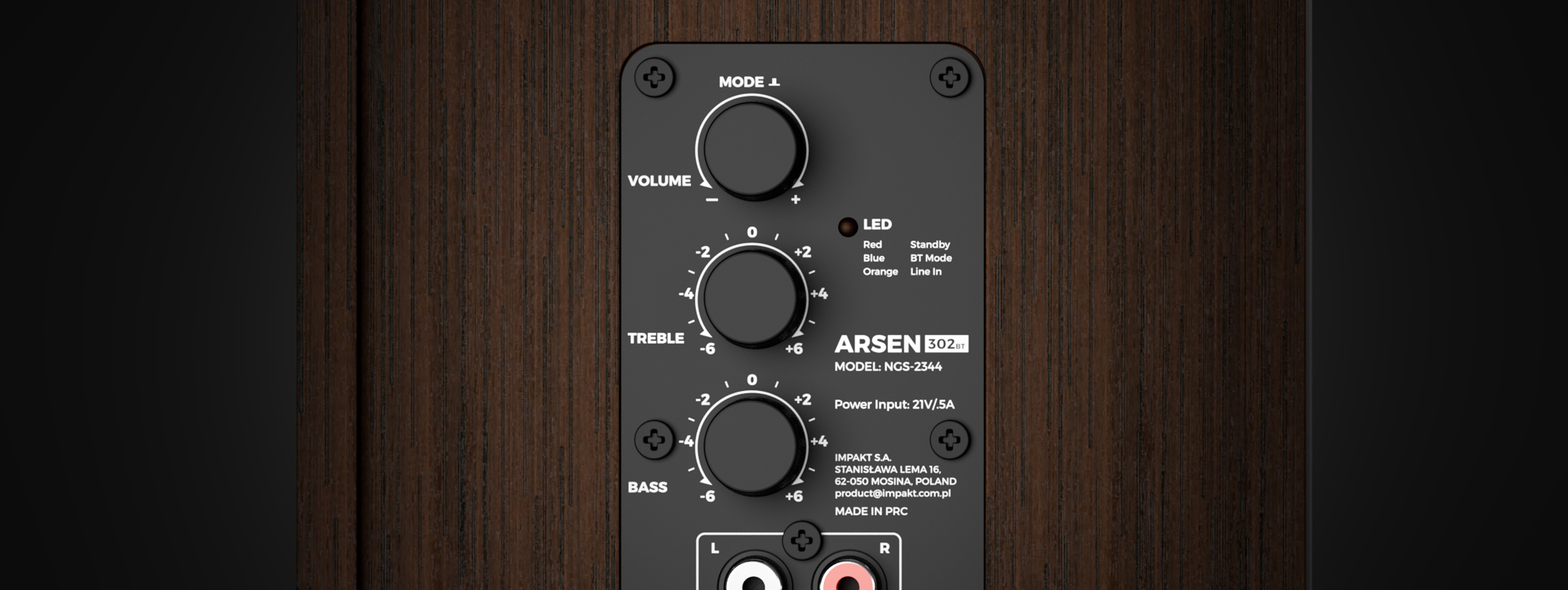 Vestavěná ekvalizace vám dává možnost plně přizpůsobit zvuk svým preferencím. Ať už jste příznivci intenzivních basů, neutrálního nastavení nebo zvýrazněných výšek, Arsen 302BT vám umožní přesně nastavit zvuk podle vaší aktuální nálady, hudebního žánru nebo typu hry. Je to řešení, které vám dává svobodu - můžete si vytvořit vlastní zvukové prostředí, dokonale přizpůsobené vašim potřebám. Pro uživatele to znamená nejen pohodlí, ale také mnohem vyšší komfort poslechu - aniž by musel sahat po externích aplikacích nebo ekvalizérech. Co je důležité - výstup Bassreflex byl umístěn v přední části reproduktorů. Díky tomuto řešení se nemusíte starat o množství prostoru za reproduktory, takže je snadnější umístit je na stůl nebo skříň.
