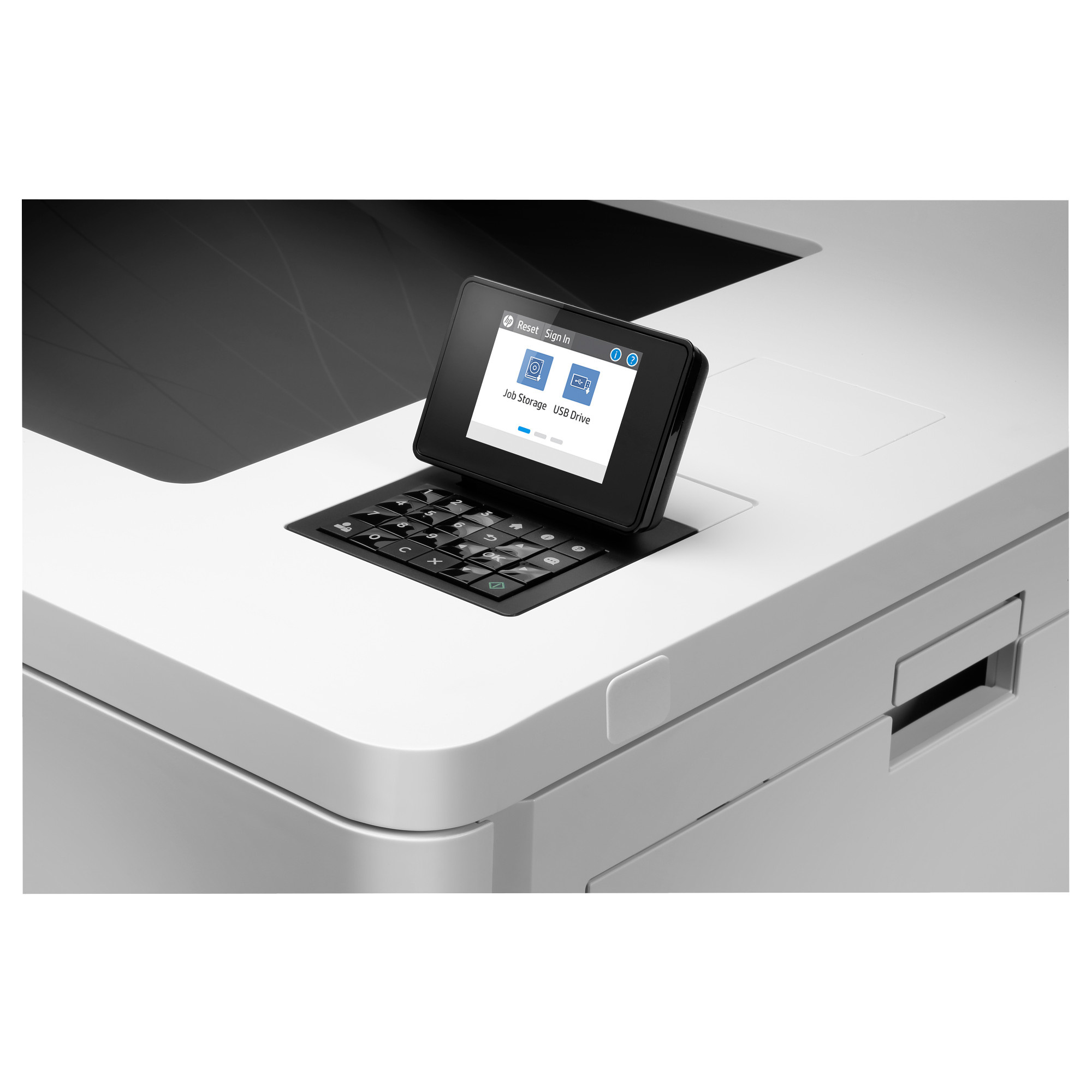 | Volitelné vstupní zařízení pro manipulaci s papírem | Rozšíření maximálně o dva kusy: Zásobník papíru na 1x 550 listů; Rozšíření maximálně o jeden kus: Zásobník papíru na 2x 550 listů s podstavcem, velkokapacitní vstupní zásobník papíru na 2 700 listů (1 600 + 1 100) s podstavcem, nebo podstavcem se skříní |