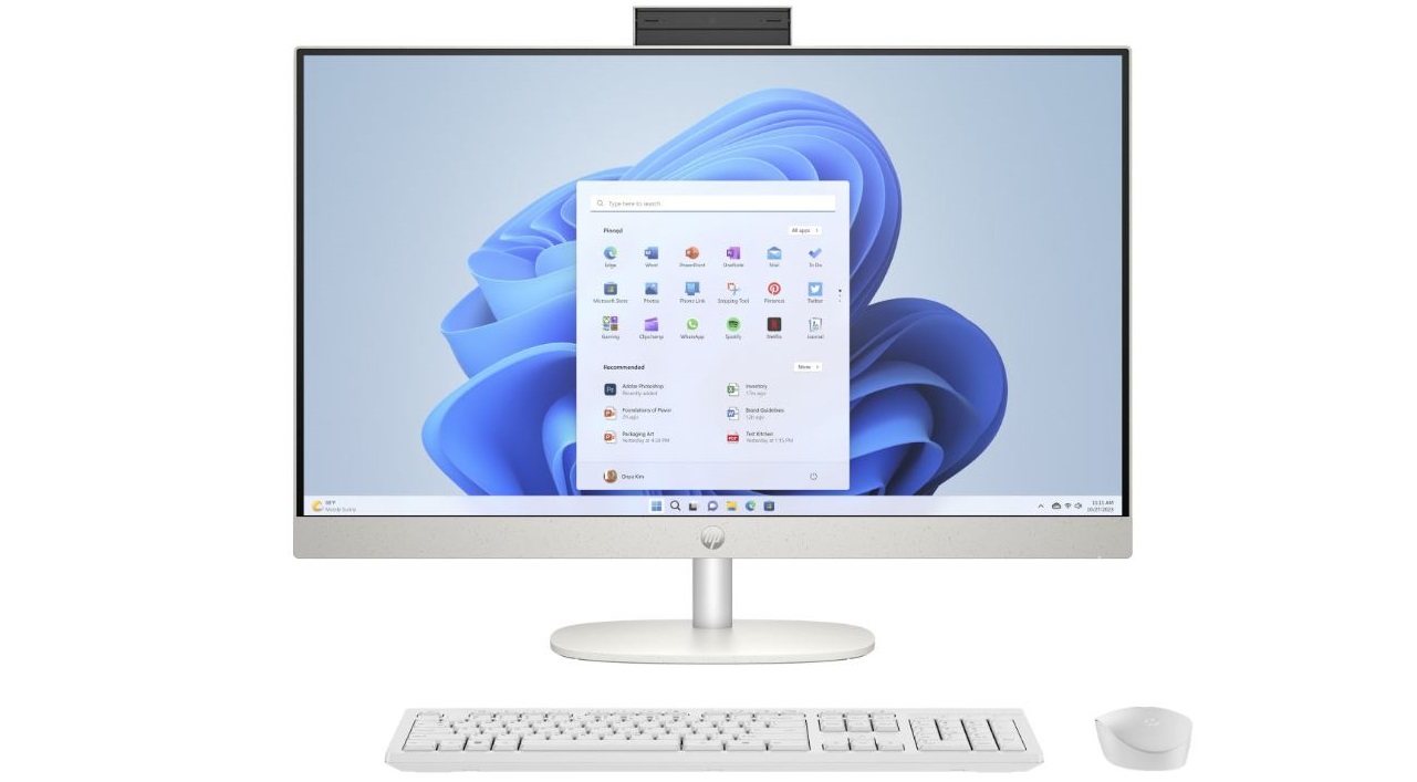 Zvládněte vše díky responzivní paměti, velkému úložišti, tenkému displeji a rychlému rozhraní Wi-Fi 6 počítače HP All-in-One.
